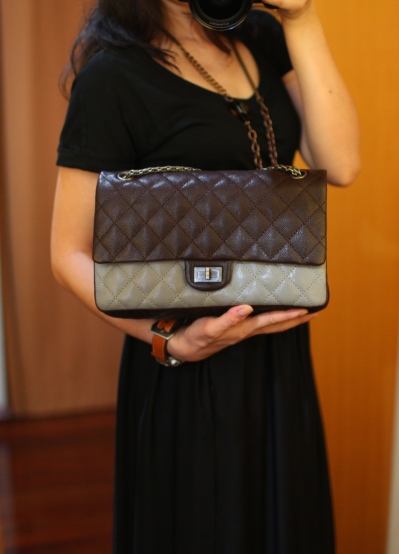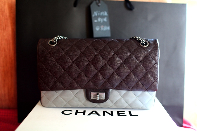 New Chanel Runway Fall 2010 Reissue 226 (11") 2 tones สวยมากอย่าบอกใคร ได้ทั้งหรู ทั้งเท่ห์ ในใบเดียว สีบนเป็นสีออกน้ำตาล caviar ด้านล่างเป็นสี grey ด้านในเป็น grey ด้านหลังเป็นน้ำตาล โซ่เงินรมควัน ไม่ธรรมดาใช่มั๊ยหล่ะ ไม่ซ้ำไม่โหลหายากมาก Limited edition เป็น set for runway fall 2010 (reference ภาพใน web ด้านล่างค่ะ)