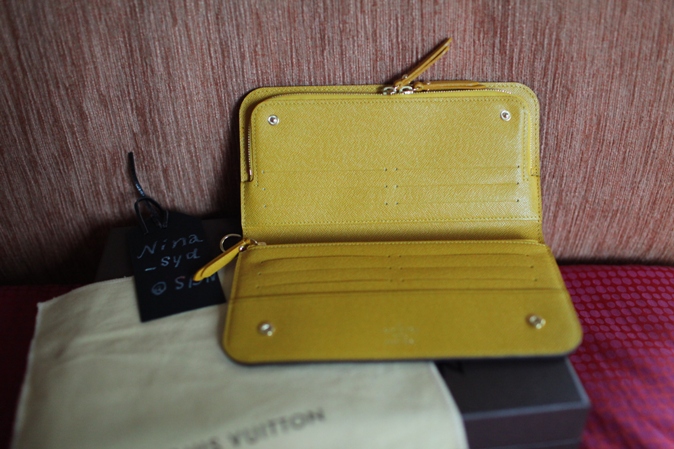 New LV Insolite Wallet ด้านในสีเหลืองสวยเวลาเปิดออกมาแจ่มสะดุดตา ตอนแรกว่าจะเลือกสีแดงมาให้แต่เห็นมันแสบตาไป สีเหลืองสวยกว่าเลยสอยมาให้เพื่อนๆได้เป็นเจ้าของกันค่า