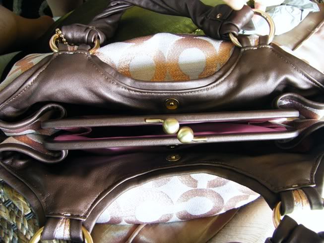 - ช่องกระเป๋ามีสามช่องแยกจากกัน ช่องกลางเป็นตัว kiss lock สามารถเปิดได้กว้าง