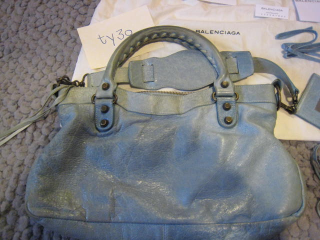 USED: Balenciaga first ปี 2005 สี Sky Blue อุปกรณ์ครบ (กระจก, การ์ด 3 การ์ด, ถุงผ้า, สายสำรอง)