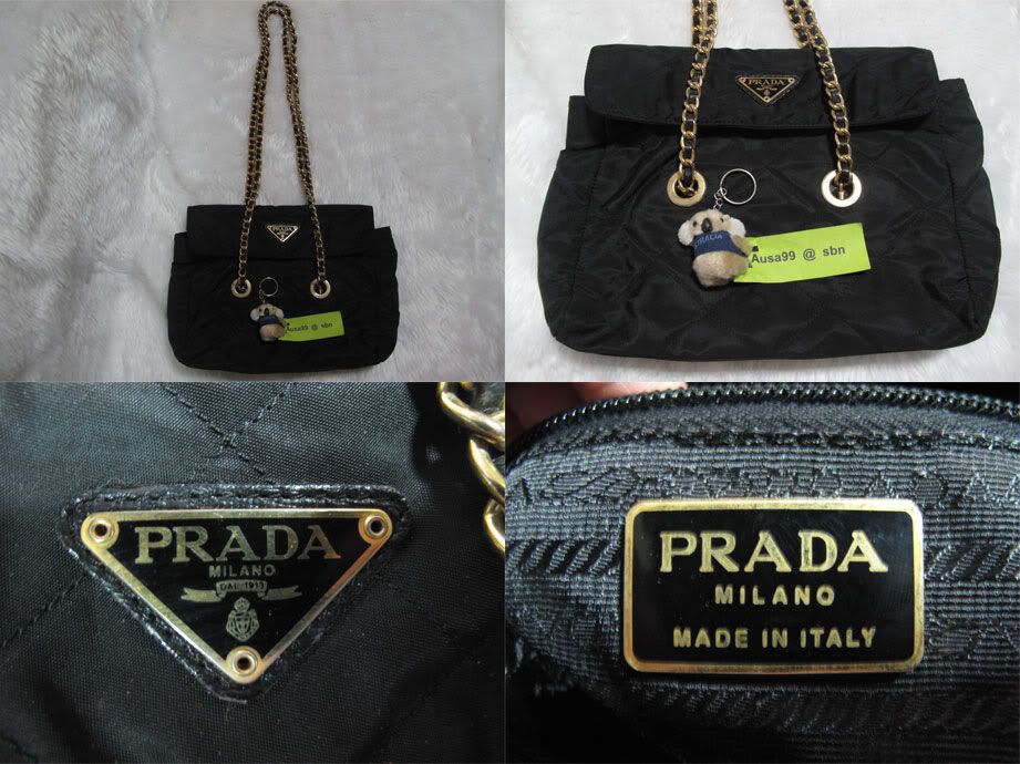 PRADA โซ่ทอง สีดำ สวยไม่มีขาด ขนาด กว้าง 10 นิ้ว สูง 9 นิ้ว ราคา 3000 บาทจ้า