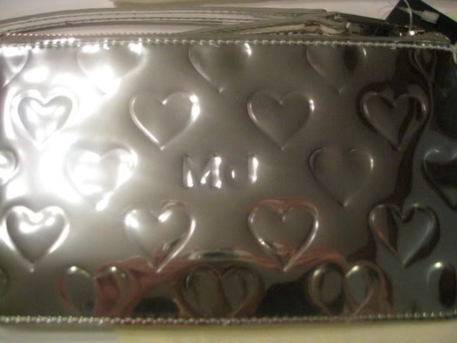 ของใหม่มีป้ายห้อย สีเงิน 11.5 * 21 cm หนังแก้วปั๊มลายหัวใจ ซิบด้านบน สายห้อยข้อมือ มาพร้อมถุงผ้า