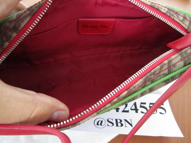Dior ใบนี้เก็บอย่างเดียวเช่นเคย เอาไว้ใส่ไอพอดไอโฟน บีบี กระเป๋าตัง เดินเล่น น่ารักๆคะ สายหนังจะงอเพราะไม่เคยใช้เลยเก็บอย่างเดียว แต่ถ้าใช้งานจะคลายตัวนะจ๊ะ อุปกรณ์ มี Dust bag carebook และการ์ด นานาชนิด จาก Dior คะ 8900-