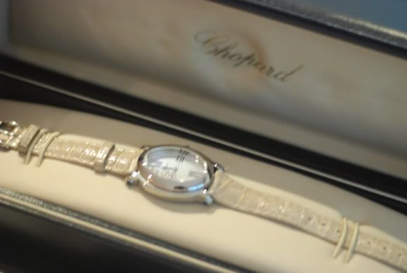 8. Chopard watch 7 pcs of diamond oval shape with pearl face is new collection very good condition with warrantee card, box only 2 years