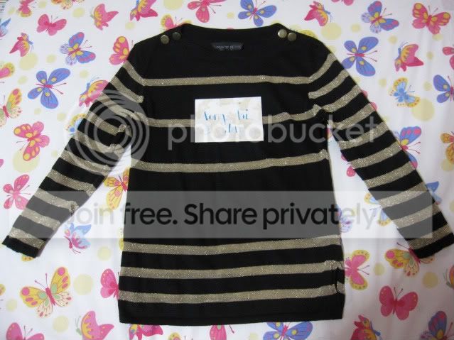 เสื้อ Topshop size UK6 ลายขวางสีทอง มีกระดุมตรงบ่า ขาย 1100 บาท