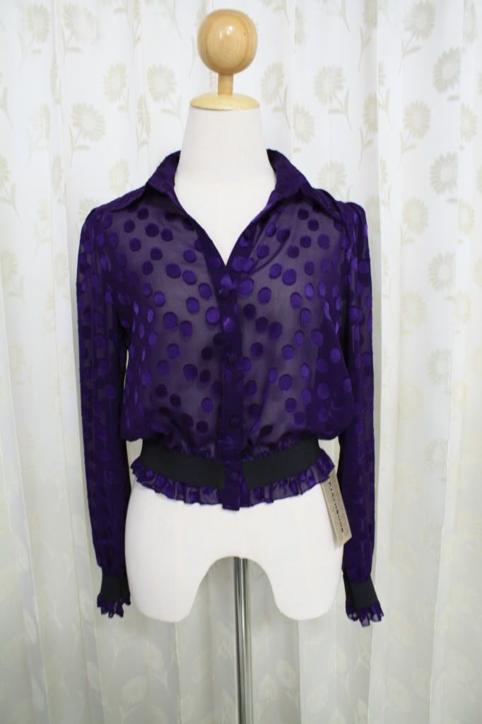 playhound เสื้อซีทรูสีม่วง ลายวงกลมน่ารักมากๆ จั้มเอว ของใหม่ป้ายห้อย sold
