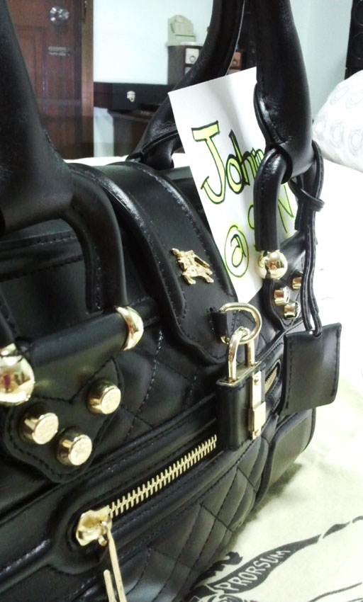 B2_BURBERRY MINI MANOR BLACK กระเป๋าถือ สีดำตัดทอง สุดหรู