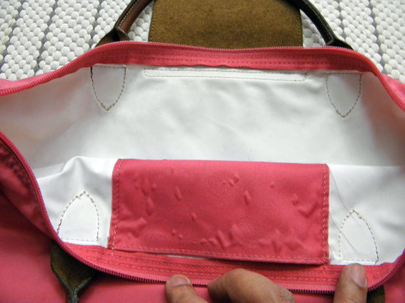 6. กระเป๋า longchamp ไซส์ "M" (เล็ก) หูสั้น สีชมพู บวมแล้วค่ะ ดึงแยกซับออกเป็นสองชั้นแล้ว ด้านในมีขาดตรงรอยเย็บติดกับสายนิสนึงค่ะ ด้านนอกไม่มีขาดค่ะ สีไม่เฟด ใบนี้ขาย 700 รวมส่ง