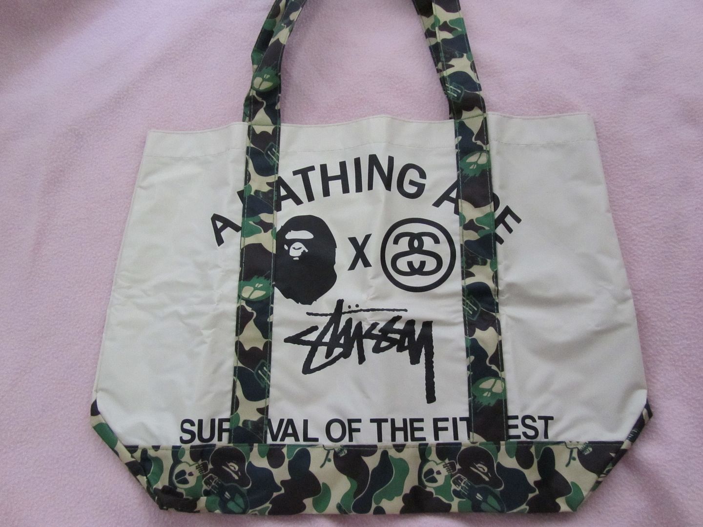 [SIZE="5"]New Stussy Shopping Tote สีครีมขอบสีเขียวลายทหาร ใส่ของได้เยอะจุใจ ของจริงเท่ห์สุดๆๆ ค่ะ ของใหม่นะคะ