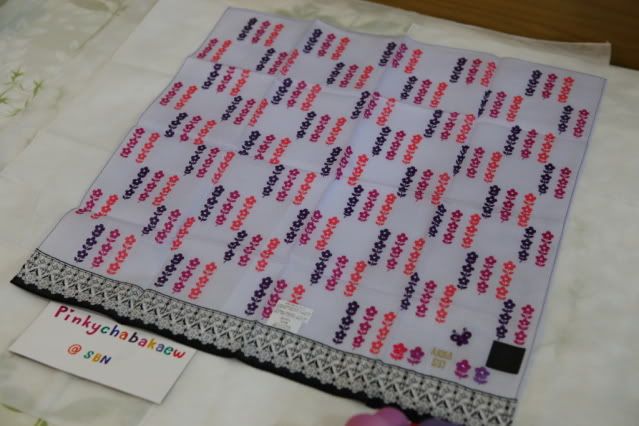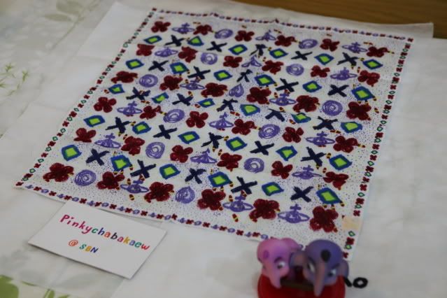 บริเวณมุมของผ้า จะเป็นลายปัก มีลูกเล่น นูนๆขึ้นมา บางอันก็มีcrystal วิ๊งๆน่ารักๆ