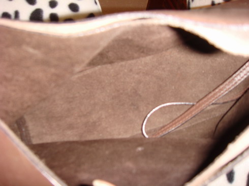 มุมล่างกระเป๋าด้านนอก มีรอยย่น ส่วนภายในมีรอยเลอะ