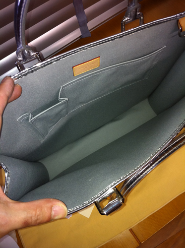 ภายในบุผ้าไหมสีเทาเงิน สวยหรูมากๆครับ มีช่องเล็กเก็บของ และหูเกี่ยวเป๋าเล็ก