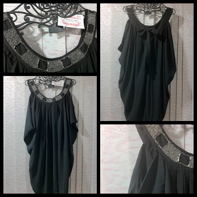 2. Dress สีดำปักเลื่อมที่คอ ดูหรูหราไฮโซค่ะ ด้านหลังคว้าน และเป็นโบว์มาผูกค่ะ sexy กะลังดี ขายที่ 1000 บาท