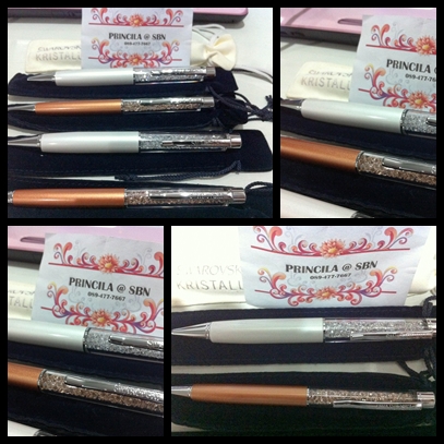 ขอปิดท้ายด้วยปากกา SWAROVSKI จากเชคค่ะ ซื้อมาปีที่แล้ว ปลายๆปี ตอนนี้ที่ shop มีรุ่นใหม่กว่านี้เข้ามาแล้ว จะเพิ่มมาคือตุ้งติ้งห้อยอันเล็กๆค่ะ ขายอยู่ 1800 บาท ของเราแม่ซื้อมาเยอะมากเลยเอามาลองขายต่อดูบ้างค่ะ เพราะเรามีสีละ 5 ด้ามแน่ะ เราไม่มีอุปกรณ์ให้นะคะ ที่นั่นเค้าไม่ได้ให้อ่ะไรมา มีแต่ตัวปากกากะซองกำมะหยี่สีน้ำเงินค่ะ ขายด้ามละ 1000 บาทค่ะ เม็ดคริสตัลระยิบระยับมากๆค่ะ สวยมาก