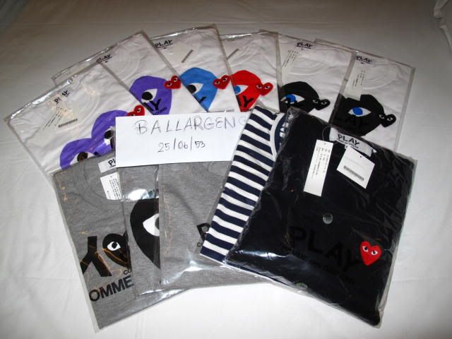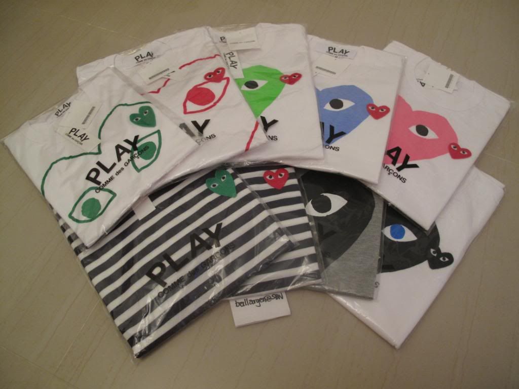 เสื้อยืดสีดำ หัวใจลายเส้นสีขาวกลับหัว แล้วมีตัวเขียน PLAY ด้านใต้ ญ 2700 ช 2800
