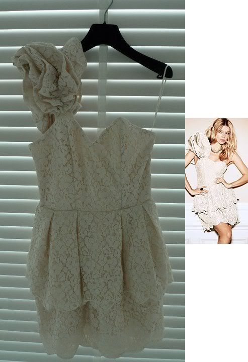 ♥Gently flared one-shoulder dress with chiffon tiers. Concealed silicone trim around the top