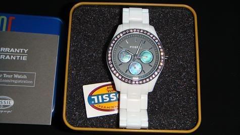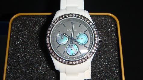 1.นาฬิกา ยี่ห้อ FOSSIL ของใหม่ค่า สายเป็นอคริลิคผสมเซรามิค หน้าปัดสีเทาล้อมเพ็ชรสีเทา มี 3 หน้าปัดเล็กๆข้างในคือ เป็นวัน วันที่ แล้วก็แบบ 24 ชม.ค่ะ หน้าปัดเล็กนี้เป็นหน้าปัดมุกนะคะสีเหลือบๆ สวยมากมาย อินเทรนด์สุดๆ