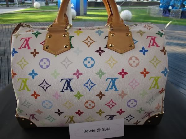 Used: LV White Multicolor Speedy สภาพโดยรวมดีมากๆๆค่ะ มีรอยที่หูจับและตามมุมกระเป๋าบ้างตามการใช้งานตามรูปเลยนะคะ ราคา 35,000 บาท