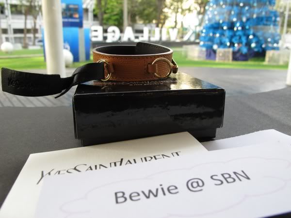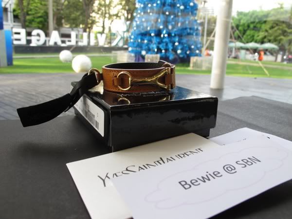 ข้อมือหนัง YSL ตัวล็อคเป็น Y สีทองปรับขนาดได้ เส้นหนังเป็นสีน้ำตาลทอง เหมือนสี Gold ของ Hermes ค่ะ ราคา 8,000 บาท