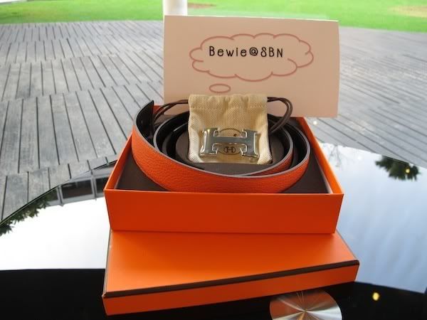 เข็มขัด Hermes H Silver Buckle with Orange/Brown strap size 80 ราคา 2,1000 บาท