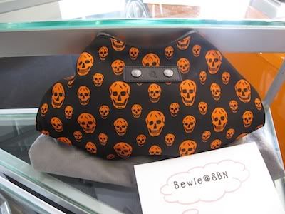 Clutch Alexander Mcqueen with black satin and orange skull ราคา 19,500 บาท