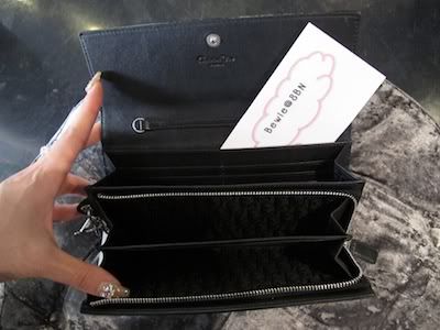 อันนี้เป็นรุ่นยอดฮิตค่ะ Black Prada Zippy Wallet จุของได้เยอะมากค่ะ มีหลาบช่องเลยค่ะได้ทั้ง Card, Name Card, และ Credit card slip ค่ะ ราคา 14,000 บาท