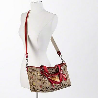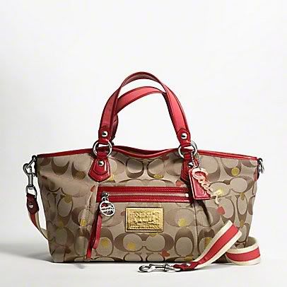 8. Coach Poppy Signature Sateen Lurex Luxey Satchel # 15868ขนาด 12 (L) x 9 1/2 (H) x 4 1/2 (W) ใบนี้เป็นหนังสีแดงเข้มทั้งใบ เปรี้ยวเด่นสุดๆค่ะ ป้ายโลโก้และอะไหล่เป็นสีทองดูหรูมากๆ จะสะพายไหล่ หรือคล้องแขนก็ได้ค่า สายสะพายก็ถอดออกได้หรือจะเก็บไว้ด้านล่างตรงก้นกระเป๋าก็ได้นะคะ มาพร้อม ถุงผ้า, Original Price Tag, Coach Care Card, และ Coach Tissue Paper ค่ะ ราคา 11,900 บาท (รูปแรกยืมมาจากเว็บ coach นะคะ) ------------> ลดเหลือ 9,900 บาท