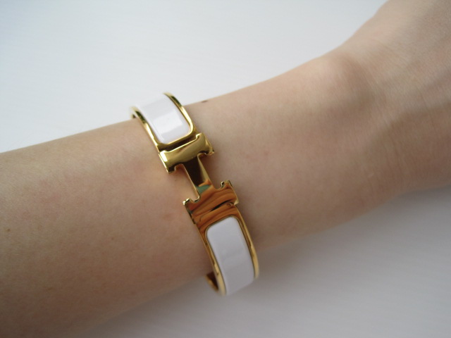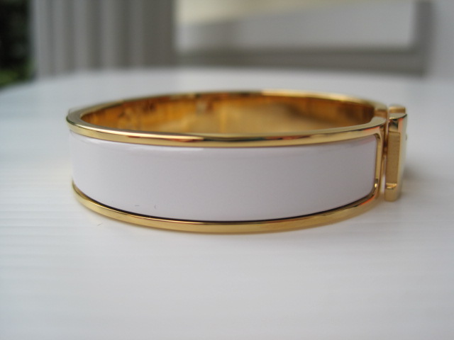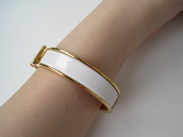 [size=+3]HERMES CLICK CLACK White / Gold ข้อมือขนาด 6-7" สภาพใหม่มากค่ะ สีขาวตัดกับสีทอง สวยจริงๆค่ะ แทบจะไม่มีรอยขนแมว และ ยังมีซีลติดอยู่ด้านหลังกำไล มีพร้อม กล่อง ขาย 12,000
