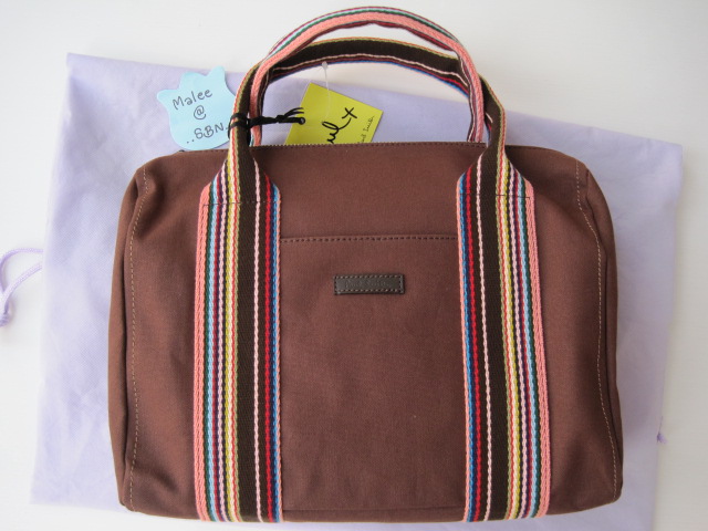 [size=+3]Paul smith bag ของใหม่ค่ะ ขนาด ใส่ของได้จุพอสมควร ซิปกระเป๋าเปิดได้กว้างใช้งานง่าย ทรงถือค่ะ ด้านในมีช่องซิปและช่องใส่มือถือ ตัวกระเป๋าทำจากผ้า และอะไหล่บางส่วนเป็นหนังแท้ มีพร้อมถุงผ้า ขาย 7,500