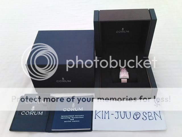 CORUM **ล้อมเพชรเม็ดใหญ่+สายหนังจระเข้แท้ค่ะ** ของใหม่ค่ะ อุปกรณ์มีกล่อง คู่มือ ใบรับประกันและ Diamonds Certificate ครบค่ะ ตัวเรือน Stainless Steel ตัวเรือนขนาด 29 mm. สูง 53 mm. หนา 8 mm. ล้อมเพชรแท้น้ำงาม 98-97 (F-G Color / VVS) จำนวน 67 เม็ด น้ำหนักรวม 1.55 กะรัต หน้าปัทม์สีชมพู กระจก Sapphire Crystal / Swiss Made ค่ะ สายหนังจระเข้แท้สีชมพูค่ะ ราคาตามป้าย $12,555 หรือประมาณเกือบ 4 แสนบาทค่ะ วันนี้ขอขาย 98,000 SALE >> 95,000