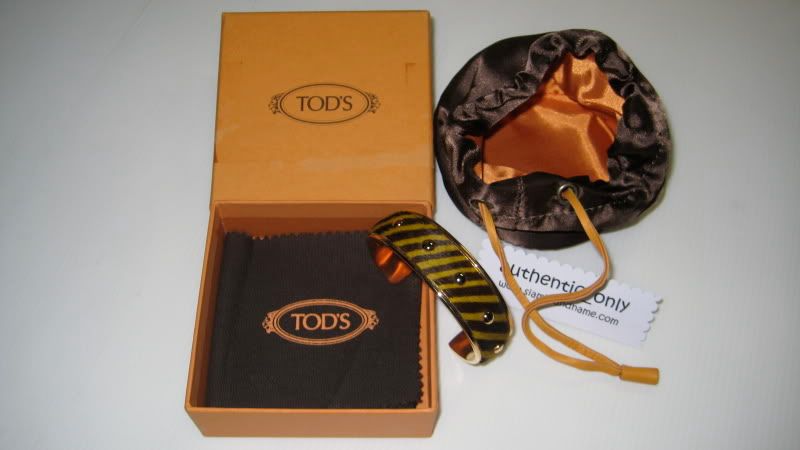 (3) มีผ้าสีน้ำตาลของ TOD's พลิกดูด้านหลังออกเป็นผ้าสำลีหน่อยๆ ค่ะเดาว่าให้มาเช็ดกำไลค่ะ