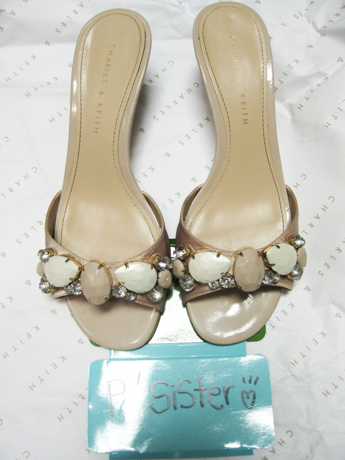 5. used รองเท้าส้นสูง charles and keith(สูงนิดเดียวนะคะ) ผ้าซาตินสีชมพู ประดับด้วยเพชร หวานน่ารักมาก size 34