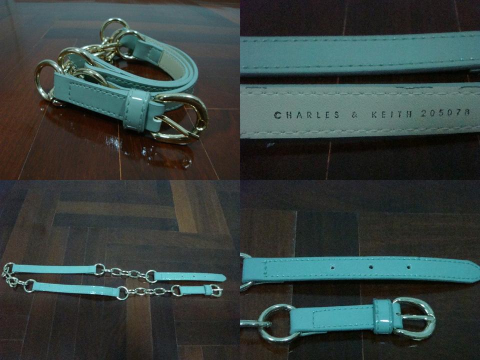 เข็มขัด Charles&Keith : Size M : หนังสีเขียวอ่อนอมฟ้าสลับทอง 900 บาท