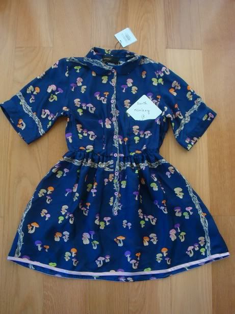 senada dress ลายเห็ดผ้าซาตินสีน้ำเงิน size s ของใหม่พร้อมป้าย ราคา 8,850 บาท