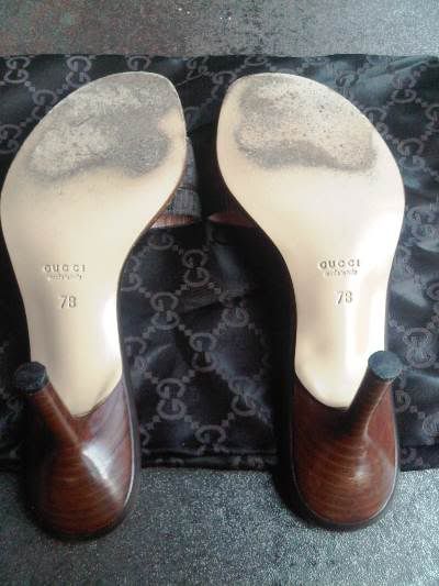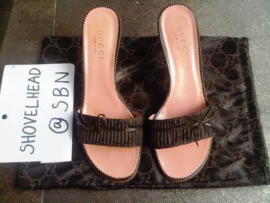 รองเท้า GUCCI สีน้ำตาลสายคาดลายโลโก้ Size 7 US ส้นสูง 3 นิ้ว ใส่ไม่กี่ครั้ง อุปกรณ์มีกล่องกับถุง ขาย 3,900 บาท โทร 081-840-8034