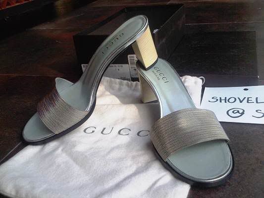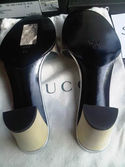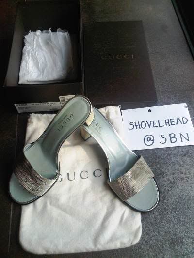 รองเท้า GUCCI สายคาดสีเงินส้นสีครีม Size 7 US ส้นสูง 2 นิ้วครึ่ง ไม่เคยใช้ เก็บอย่างเดียว พร้อมกล่องและถุง ขาย 3,900 บาท
