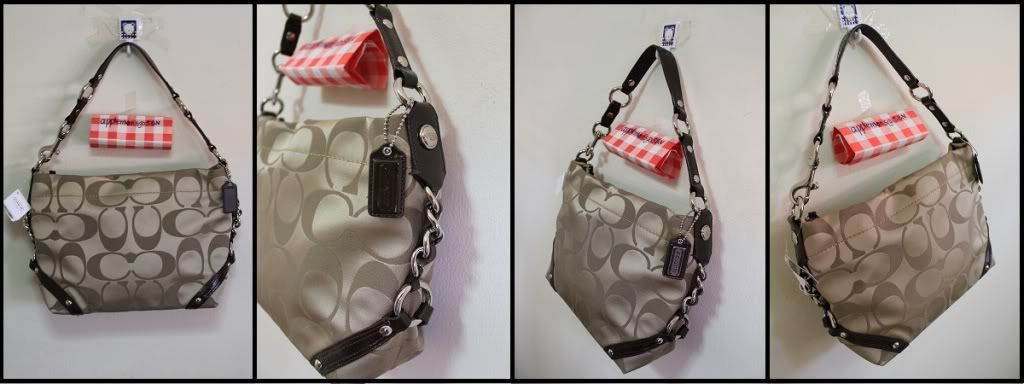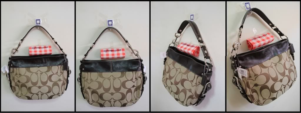3.Coach Signature Stripe Hobo ใบนี้น่ารัก ทรงสวย จุของเยอะค่ะ ใช้ได้ทุกวันค่ะ ด้านในมีช่องใส่มือถือ ช่องซิป ขนาด 41cm(L)X21.5cm(W)X12cm(H) ใบนี้ wrap ด้วยกระดาษ coach พร้อม care card + กล่อง + ถุงกระดาษ + Gift Receipt ขอขายที่ราคา 6,900 บาท
