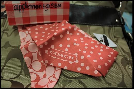 5.Coach ผ้าผูกผมผูกกระเป๋า เป็น ผ้าsilk 100% ด้านนึงเป็นลาย coach อีกด้านเป็นลาย polka dot ค่า น่ารักมากๆ พร้อม wrap ด้วยกระดาษ coach + กล่อง + ถุงกระดาษ + Gift Receipt ขอขายที่ราคา 1,050 บาท (มี 2 ผืนค่ะ)