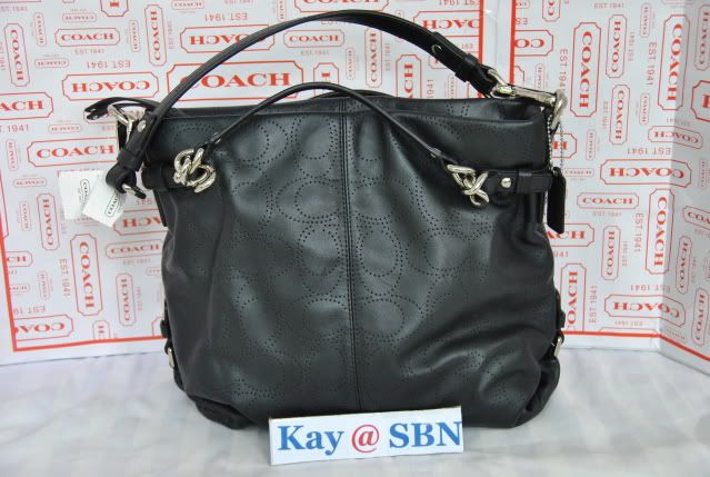 Coach Perforate Leather Brooke ราคา 7,900 บาท สีดำหนังนิ่ม ฉลุตัวซี