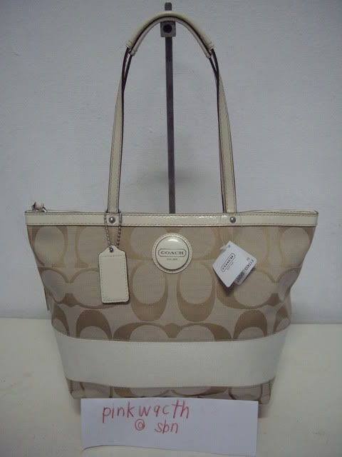 COACH signature stripe tote khaki/white#17433
