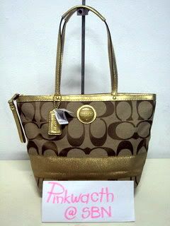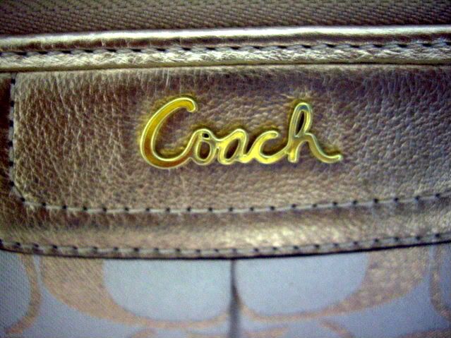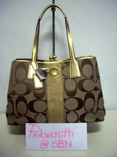 COACH signature stripe tote khaki/gold # 15112