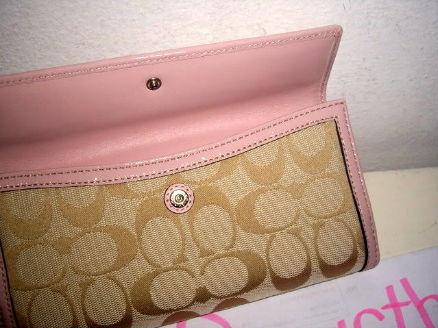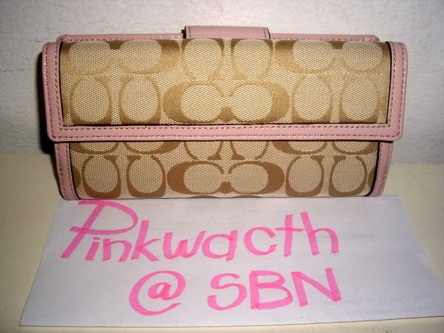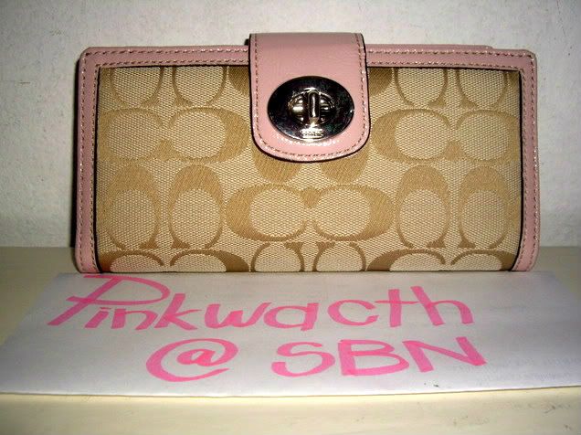 COACH signature turnlock large wallet khaki/pink # 43613