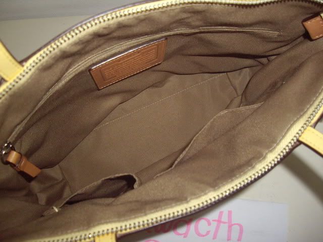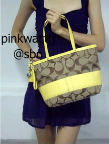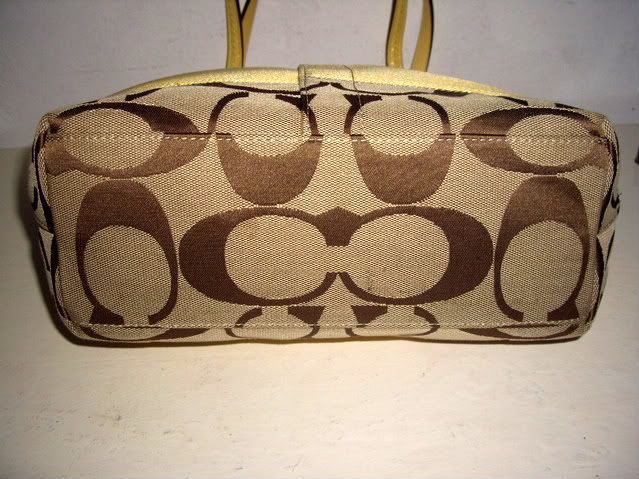 COACH signatue strip tote khaki/yellow #13548 มือสอง