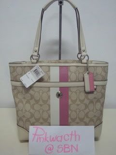 COACH signature stripe tote khaki/watermelon #17433