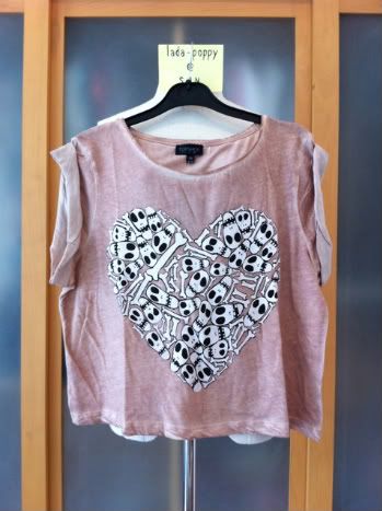 435.New Topshop Nude Skull Heart Roll Sleeve Tee sz.uk6 ~ SOLD KA บาทค่ะ
