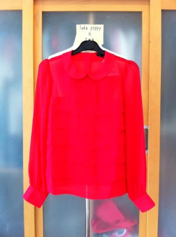 425.New Topshop Cherry Red Tiered Peter Pan Collar Blouse sz.uk6 ~ 2,690 บาทค่ะ ตัวนี้ถ่ายรูปแล้วสีเพี้ยนมากค่ะ ของจริงสีเหมือนรูปจากเว็บนะคะ เป็นสีแดงเชอรี่ จะไม่แดงแปร๊ดขนาดนี้ค่ะ