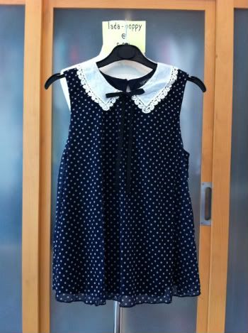 436.New Topshop Navy Polka Dot Crochet Collar Swing Top sz.uk8 ~ SOLD KA บาทค่ะ