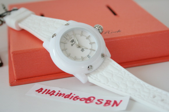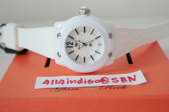 9. Glam Rock หน้าปัดขาวเพชรแท้40 เม็ด เม็ดมะยม white pearl cabochon สายยางซิลิโคนสี shocking pink สีสวยมากๆโทรมาสอบถามรายละเอียดได้เลยค่ะ :cool: