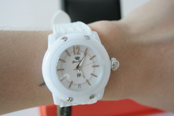 2. Glam Rock เพชรแท้ 48 เม็ดบนฝังลงบนตัวเลข หน้าปัด 40 mm. สายหนังแก้วสีขาว ราคา SOLD บาท มีตัวเดียวค่ะ