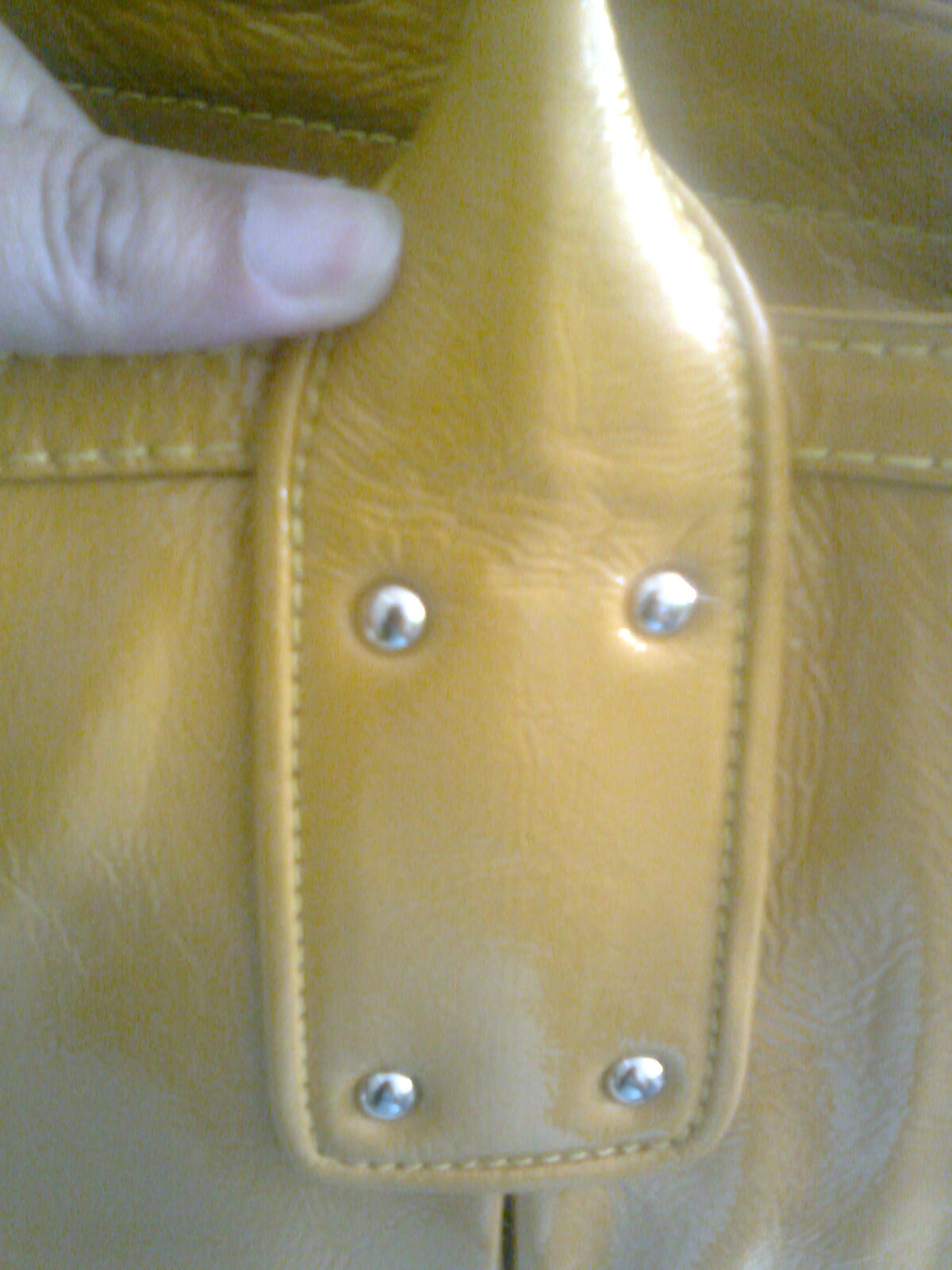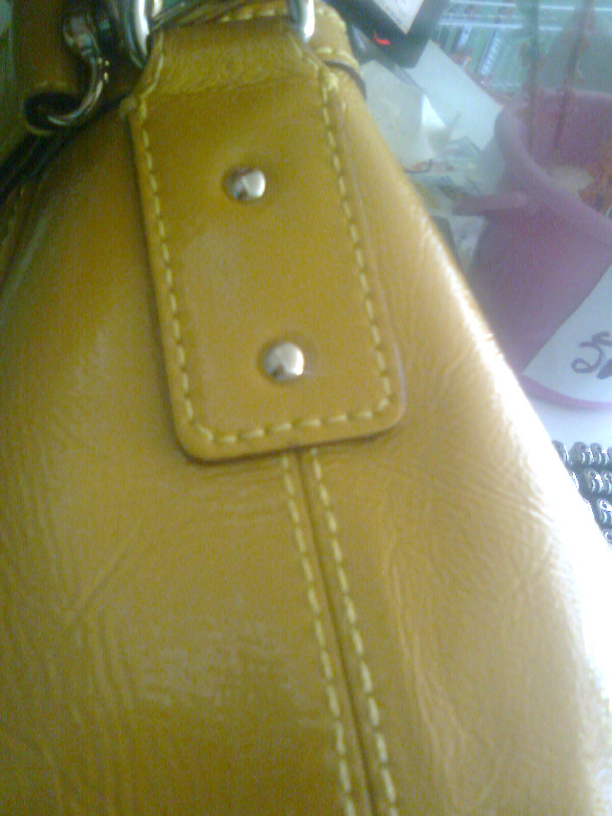 การตอกหมุดของหูจับกระเป๋าแบบสั้น ด้านหน้าค่ะ